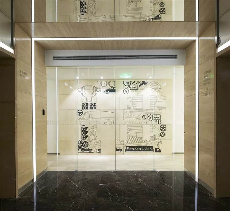 會議室的玻璃貼膜采用的三種元素組成貼膜設(shè)計(jì),一個(gè)是地圖元素應(yīng)用的APP是相關(guān)的,第二個(gè)元素是定位點(diǎn)穿插在其中。第三個(gè)因素是不同的建筑。