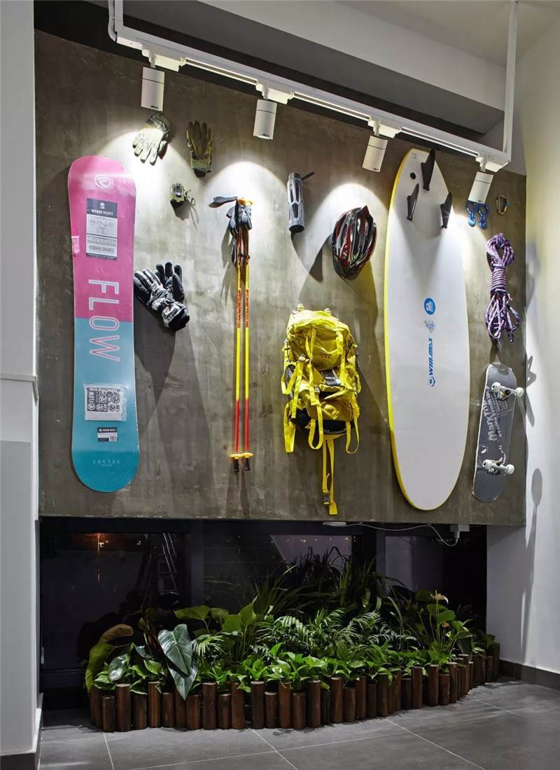 后期我們選用了一些戶外探險(xiǎn)的運(yùn)動(dòng)裝備,包括有一些極限大賽的LOGO,作為裝飾裝在了墻上,能很好地凸顯科技運(yùn)動(dòng)公司的主題,視覺效果也非常好。以上是兩個(gè)相對完整的案例,接下來還有一部分比較分散的項(xiàng)目有可能沒有形成系列,但是也都有不同的特點(diǎn)。