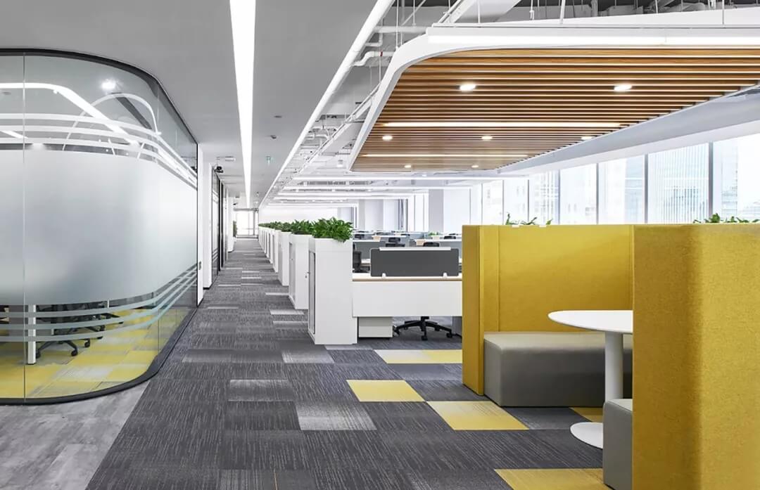 本案標(biāo)準(zhǔn)化辦公區(qū)秉持高效,功能交融,彈性多變的原則,設(shè)置大開敞辦公區(qū),多功能培訓(xùn)室,會議室,經(jīng)理辦公室等空間,聯(lián)結(jié)其他功能配套區(qū)。辦公空間的開敞、通透從普遍客觀立場而言是希望帶來環(huán)境氣氛上的舒適、放松。