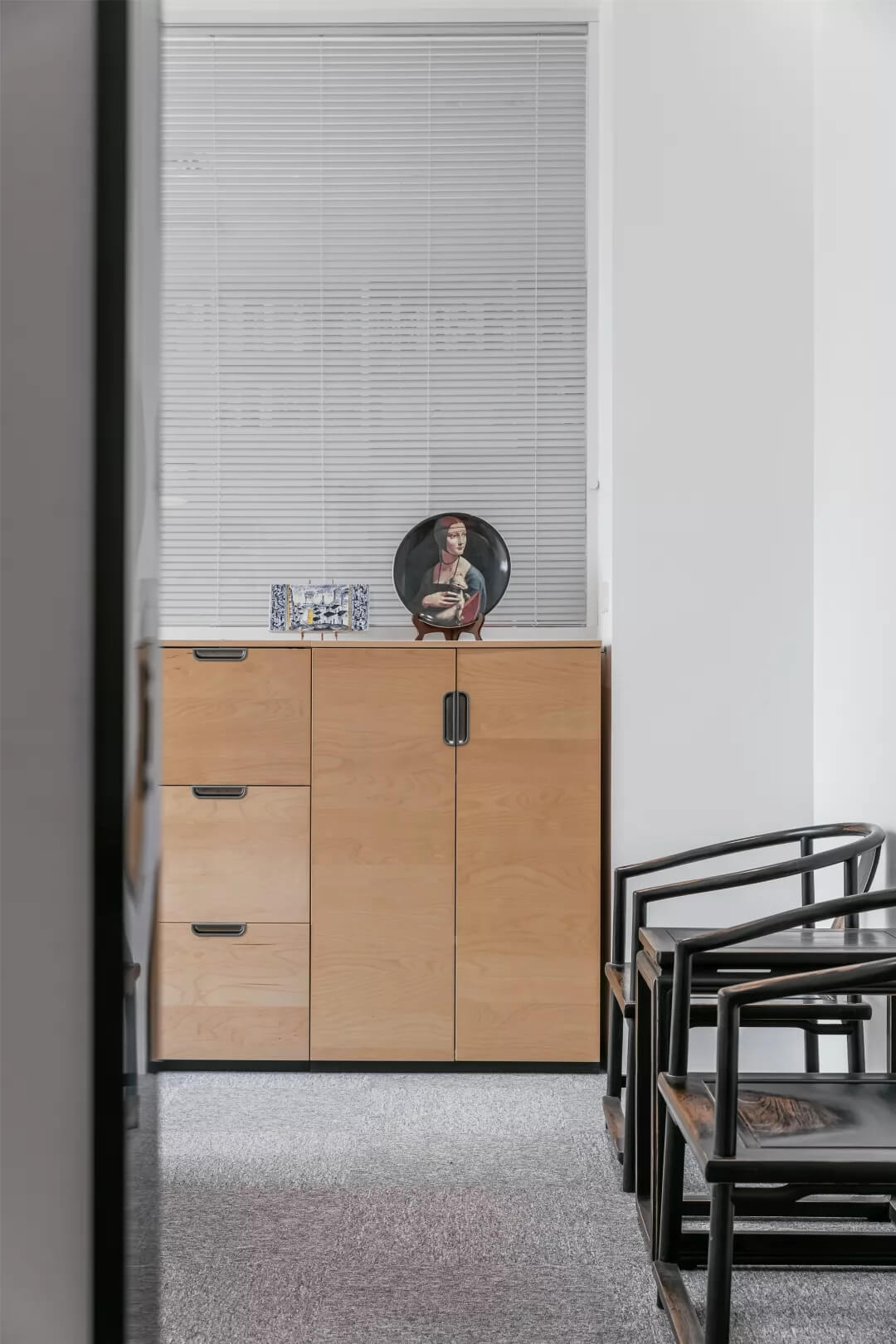 自由無(wú)拘的溝通對(duì)于團(tuán)隊(duì)的創(chuàng)新至關(guān)重要。開(kāi)放的辦公區(qū)是有效獲取信息和激發(fā)靈感的地方。百葉窗折射的光影,充足的自然光營(yíng)造高效的工作環(huán)境。空間雖然有限,但發(fā)揮最大的性能,開(kāi)辟出一整面的軟裝材料搭配區(qū)。
