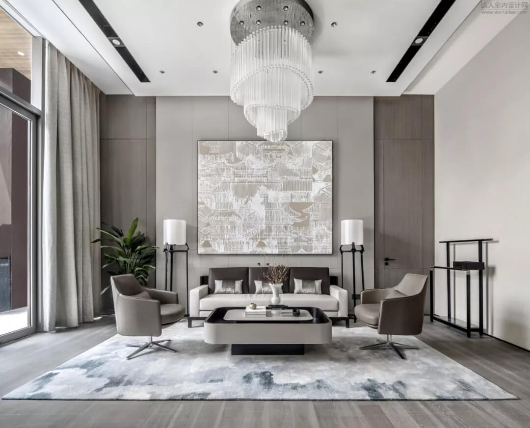 青島青特悅海府售樓處裝修,運(yùn)用極簡(jiǎn)現(xiàn)代藝術(shù)的設(shè)計(jì)手法, 融入當(dāng)代藝術(shù)與人文極簡(jiǎn),在空靈與東方意境中凝練出獨(dú)特的空間氣質(zhì)。設(shè)計(jì)師嘗試用當(dāng)代簡(jiǎn)約精神重塑東方文化的韻律之美,拂拭去顯性東方符號(hào),用去符號(hào)化的設(shè)計(jì)手法,通過刻畫自然無形的氛圍,回歸當(dāng)代設(shè)計(jì)的精神本源。