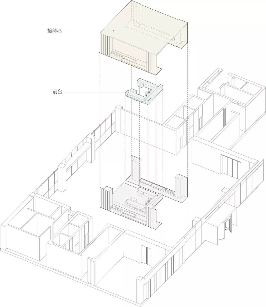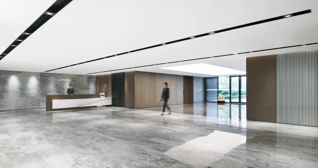 設(shè)計(jì)師通過(guò)空間布局,材料選用等營(yíng)造出大堂沉靜務(wù)實(shí)、理性的空間氛圍,咖啡,水聲,盆景,窗外的花園,以及往來(lái)的員工,客戶和行人賦予這里靈魂和氣息,使整個(gè)大堂充滿各種可能性。