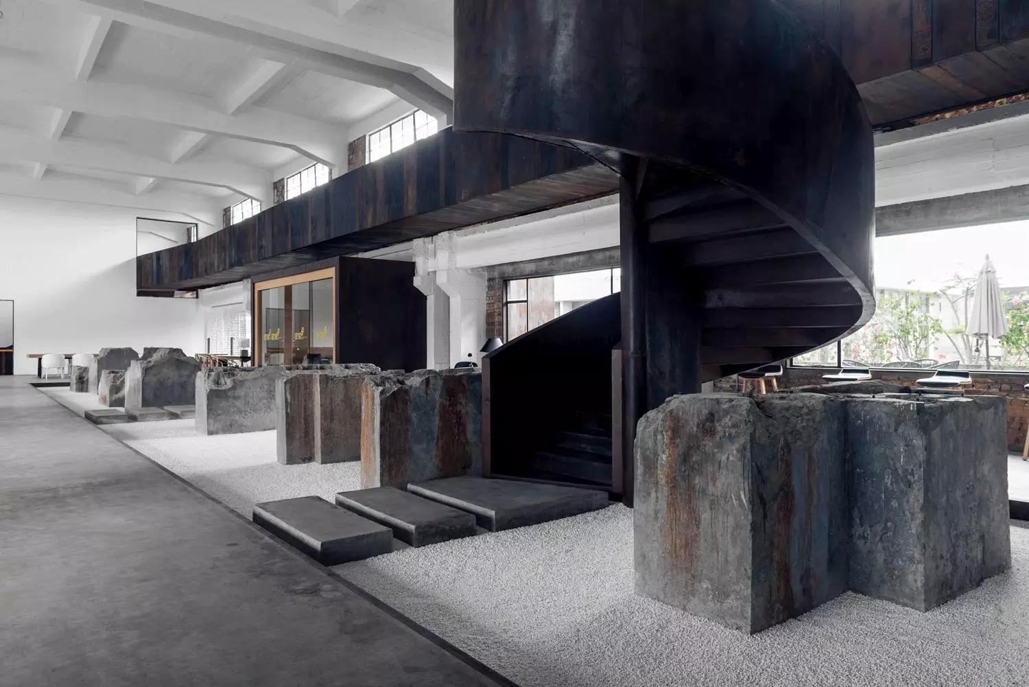 鐵質(zhì)樓梯像是舊體廠房生長出的枝椏,營造出強烈但不顯突兀的現(xiàn)代感。