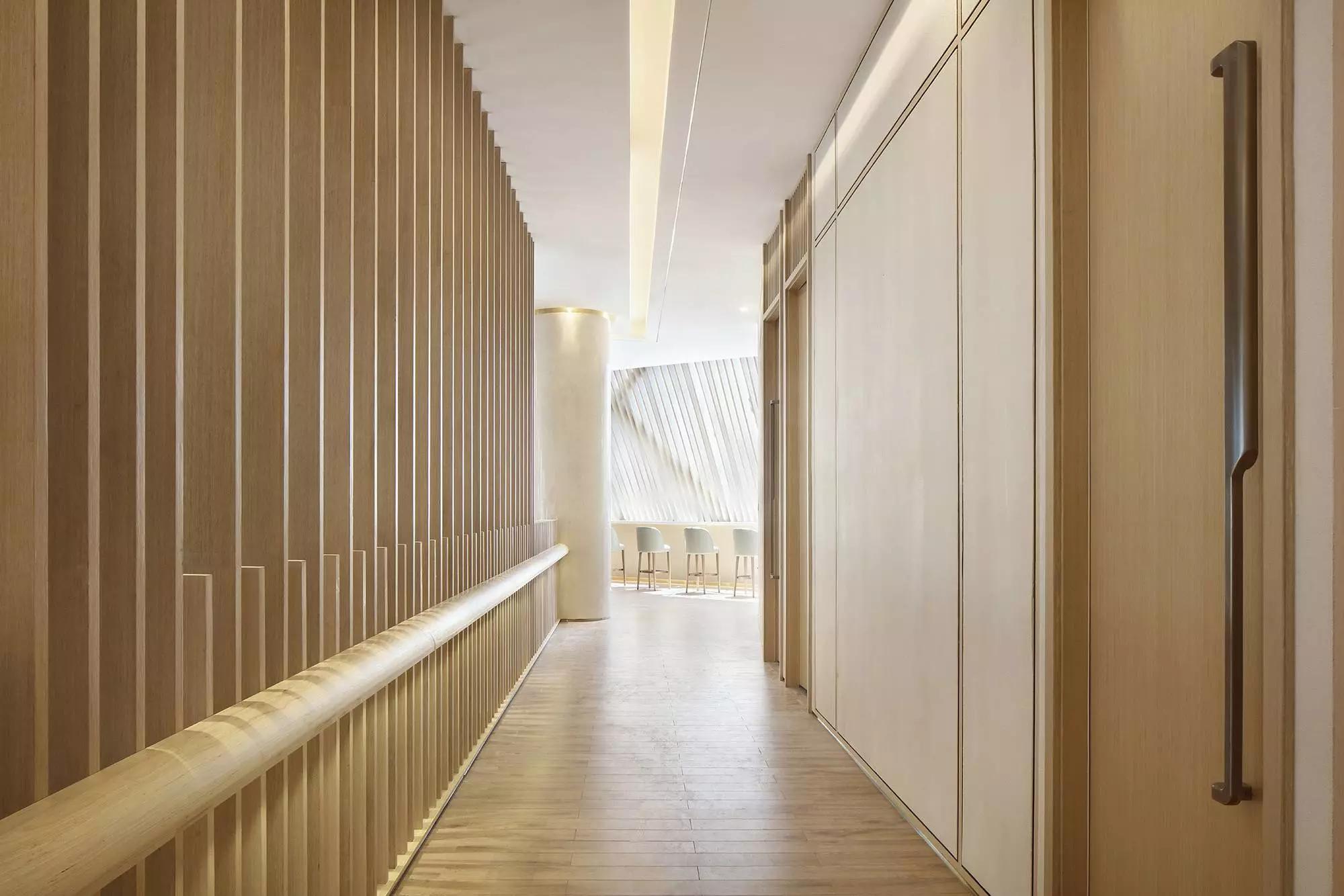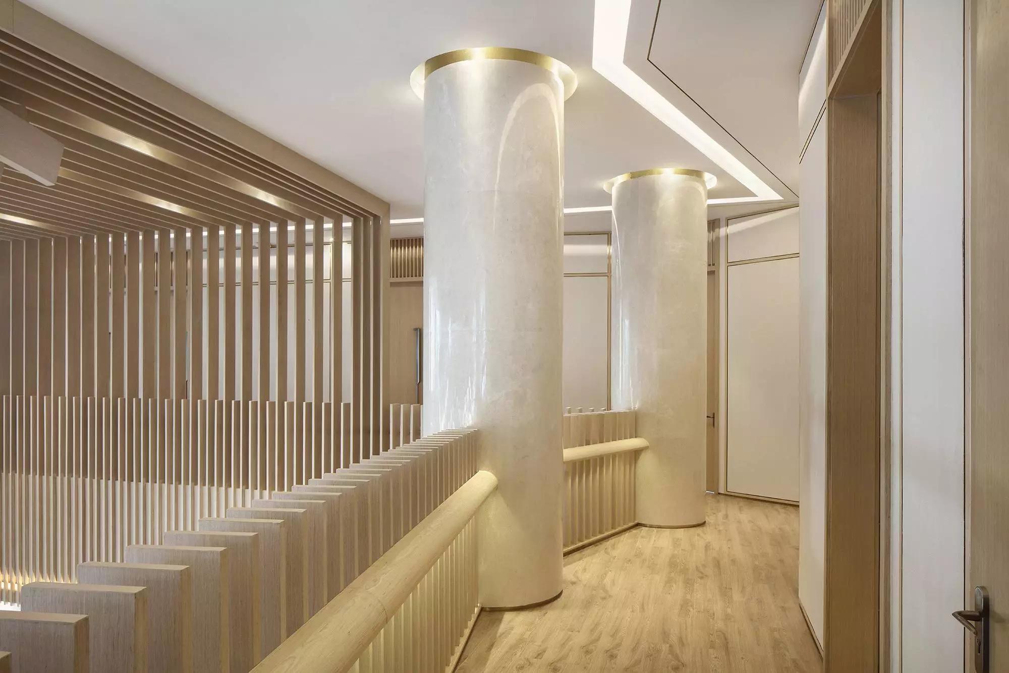 這種處理方式,仿佛原有建筑內(nèi)又套了一個(gè)建筑,觀者從外入內(nèi)將面臨到巨大的空間反差。光影從結(jié)構(gòu)衍生出來,也是結(jié)構(gòu)的一部分。采用最簡單的平行結(jié)構(gòu),光影作用下卻出現(xiàn)了復(fù)雜的韻律感受,并根據(jù)光線移動(dòng)在一天內(nèi)發(fā)生轉(zhuǎn)變。