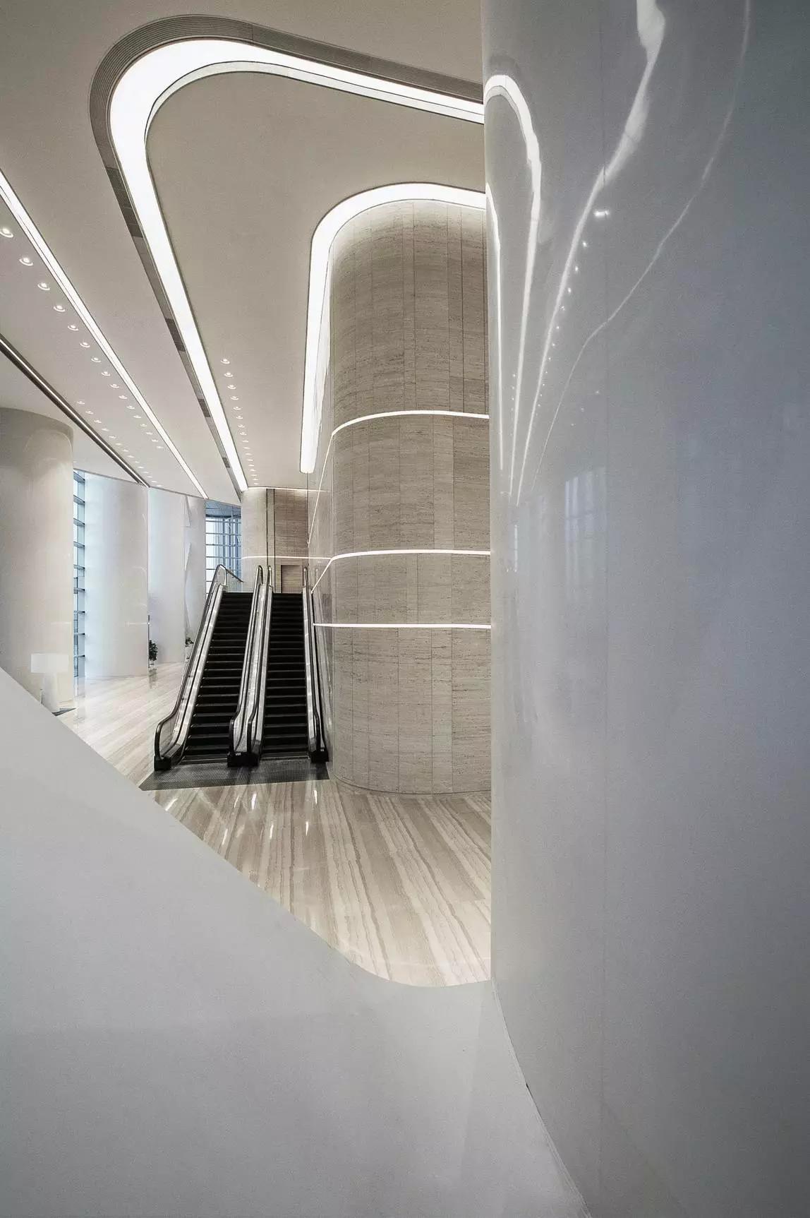 大堂設(shè)計將空間塑造作為首選,將形式、質(zhì)感、光與影等要素組合融入,創(chuàng)造性的表達(dá)空間的品質(zhì)和精神,放棄了多余的裝飾與造型,著重展現(xiàn)室內(nèi)空間與建筑空間的統(tǒng)一性。